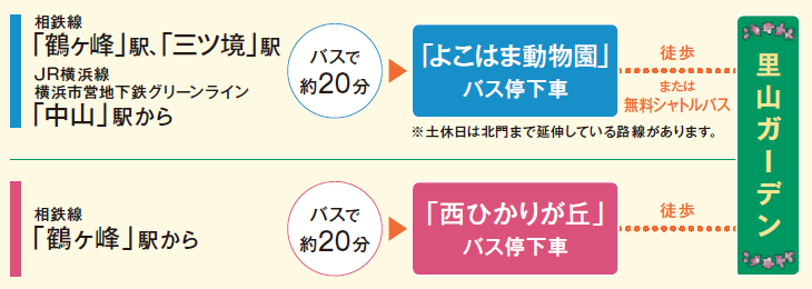 最寄駅から里山ガーデンまでのバスアクセス