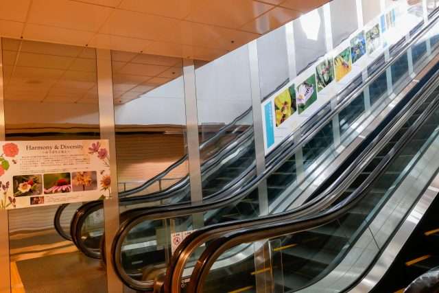 みつばち研究者であり、「はち育」技術指導者のひとりでもある干場英弘氏が撮影したみつばちと花の写真を、「四季とみつばち」「わたしたちとみつばち」「はちの仲間たち」の3つの切り口から選び、『Harmony&Diversity』(調和と多様性)をテーマとしてエスカレーター壁面に展示します。