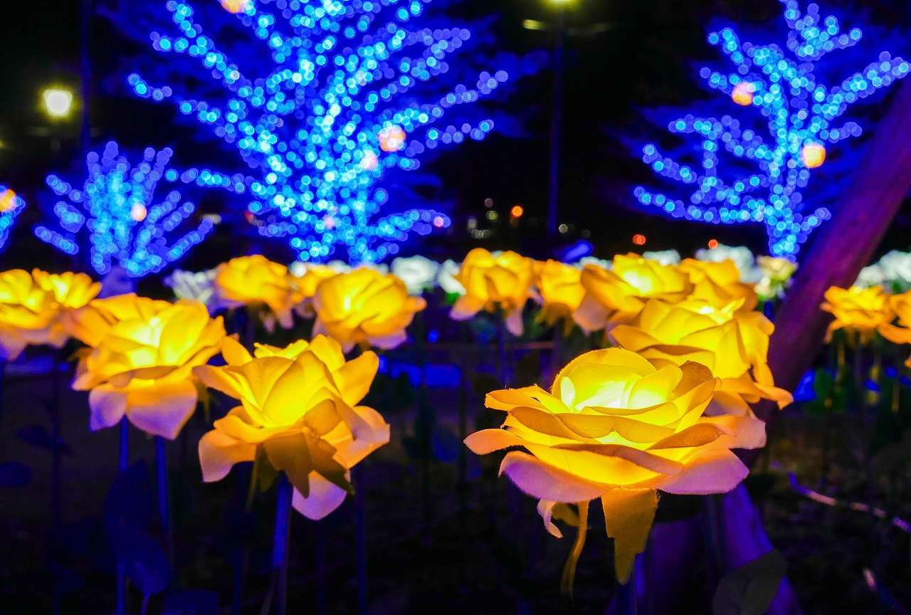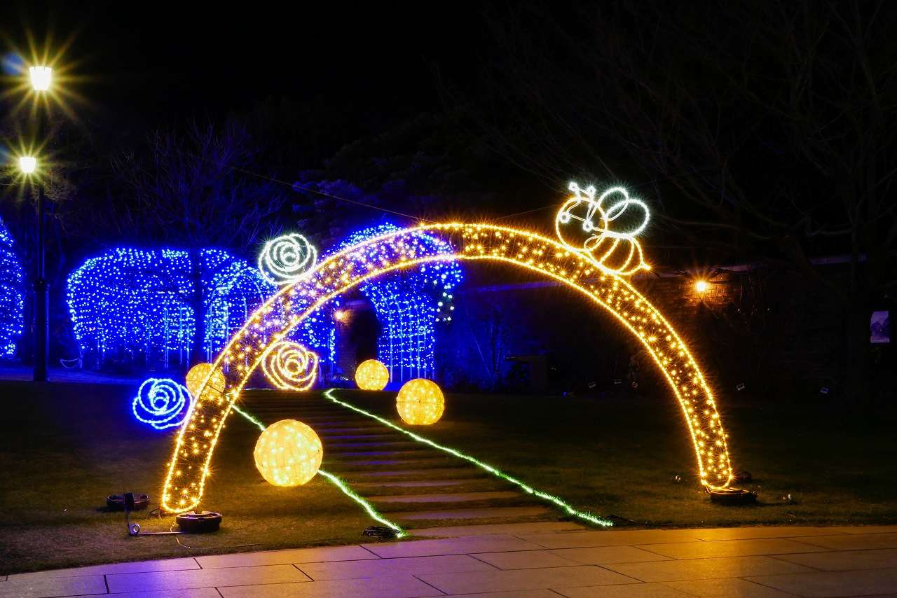 アメリカ山公園を光で彩るイルミネーション。今年のテーマはハチ。かわいらしいハチたちが園内にミツ(光)をもたらしてくれます。