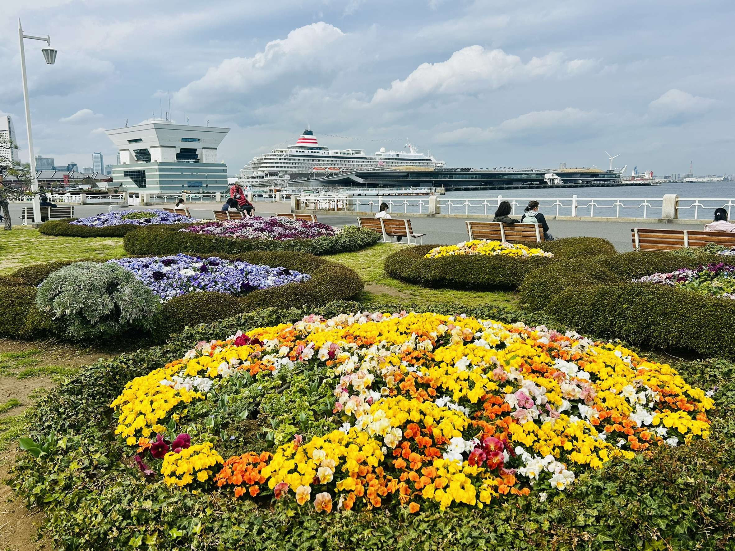 山下公園内では球根ミックス花壇やその他花壇で少しずつ花が咲き始めています。