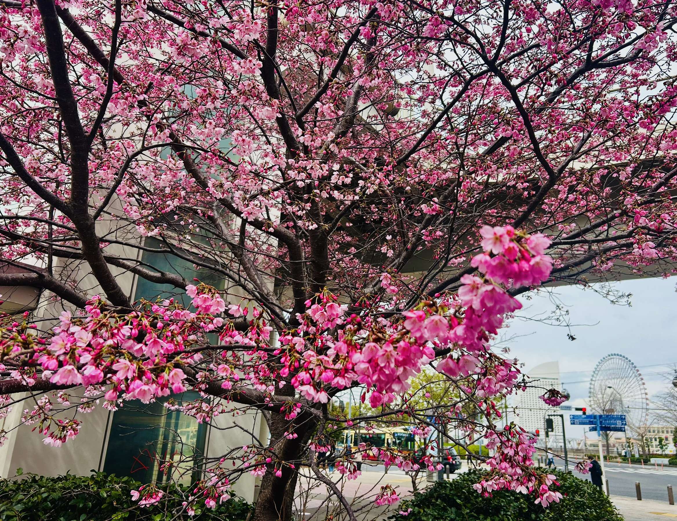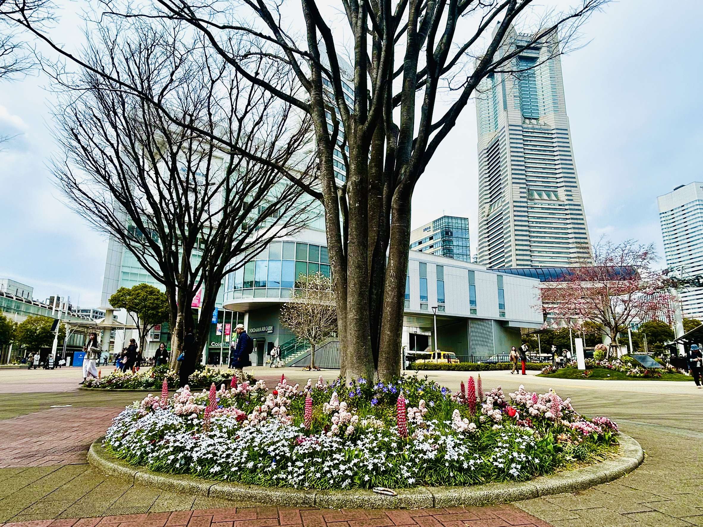 桜木町駅周辺では、さくらやその他花壇の花が咲き始めています。
