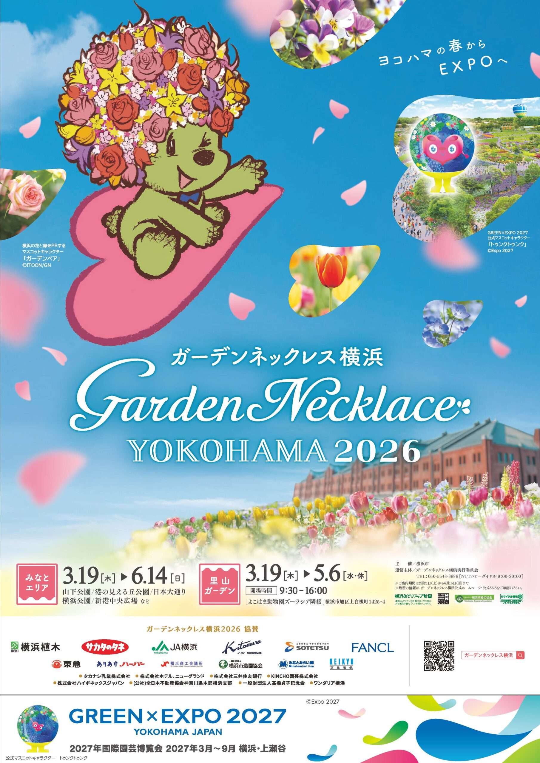 横浜の街を舞台に、季節の移り変わりに合わせて色とりどりの花のリレーをお楽しみいただける「ガーデンネックレス横浜」。今年は、メインビジュアルにGREEN×EXPO 2027 公式マスコットキャラクター「トゥンクトゥンク」が登場し、開催まで1年となったGREEN×EXPO に向けて、春のにぎわいをつなげます!